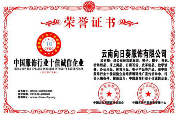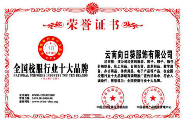 云南向日葵服飾有限公司成立于 1989 年,是具有 35年發(fā)展歷史的老牌服裝企業(yè)。原名“白玫亞達(dá)服裝廠(chǎng)”,因企業(yè)發(fā)展需要,現(xiàn)更名為“云南向日葵服飾有限公司”。云南向日葵服飾有限公司是國(guó)內(nèi)專(zhuān)業(yè)生產(chǎn)職業(yè)服裝經(jīng)營(yíng)企業(yè),是浙商在昆的知名企業(yè), 也是溫州商會(huì)常務(wù)副會(huì)長(zhǎng)單位。公司業(yè)務(wù)涉及公、檢、法、學(xué)校、交通、銀行等單位。公司從家族制企業(yè)起步,全面完成內(nèi)部職工持股改造,按照現(xiàn)代企業(yè)制度要求規(guī)范經(jīng)營(yíng),獲得業(yè)界好評(píng)和客戶(hù)信賴(lài)。